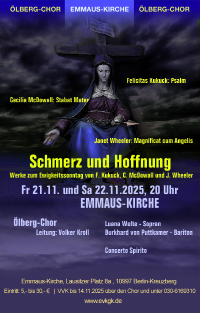 Unser November-Konzert am Wochenende des Totensonntag/Ewigkeitssonntag steht ganz im Zeichen von „Tod und Ewigkeit“. Zum Auftakt erklingt ein kurzes, a-cappella Werk von Felicitas Kukuck nach einem Text von Paul Celan, (Psalm. Die Niemandsrose) das die Vergänglichkeit des menschlichen Lebens eindringlich spürbar macht.